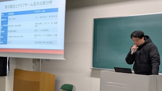 1月26日(月)・27日(火)の2日間、経営システム専攻の卒業研究発表会が行われました。村山ゼミは2日目の朝一番の発表となり、13名全員がこれまでの研究成果を堂々と発表しました。発表会終了後は深谷にて打ち上げを行い、緊張から解放された和やかな時間を過ごしました。長い時間をかけて研究に向き合い、最後までやり切った4年生の皆さん、本当にお疲れさまでした。